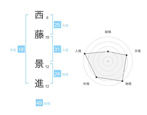 西藤 景進さんの総格は49画の2点!