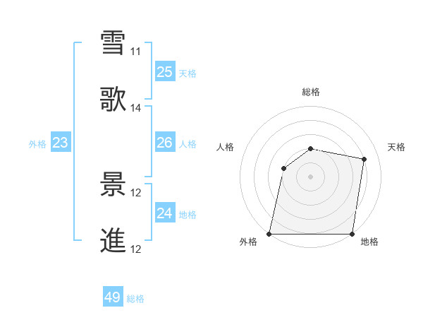 雪歌 景進さんの総格は49画の2点!