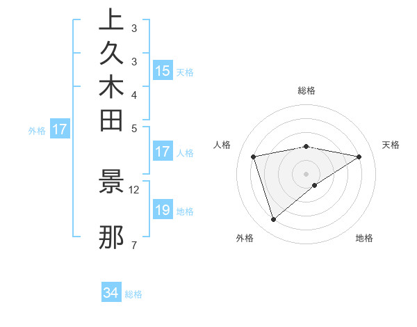 上久木田 景那さんの外格は17画の4点!