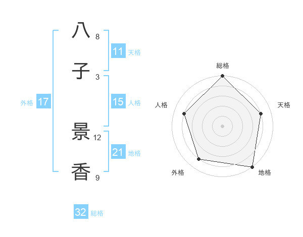 八子 景香さんの総格は32画の5点!
