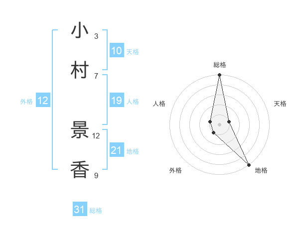 小村 景香さんの総格は31画の5点!