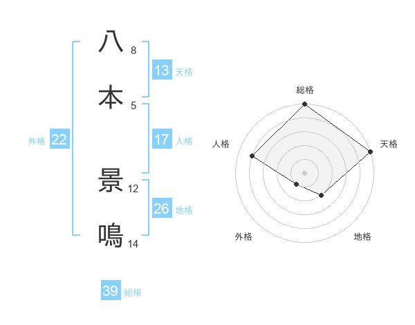 八本 景鳴さんの総格は39画の5点!