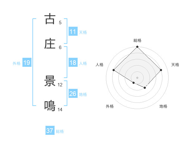 古庄 景鳴さんを姓名の画数から五運を鑑定