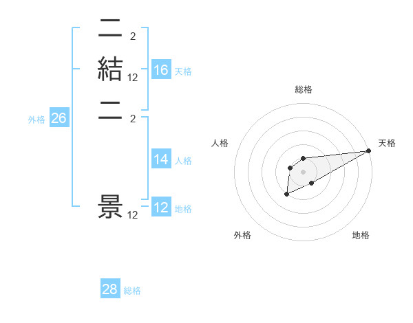 二結二 景さんの天格は16画の5点!
