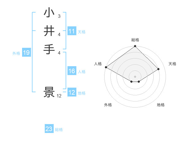 小井手 景さんの総格は23画の5点!