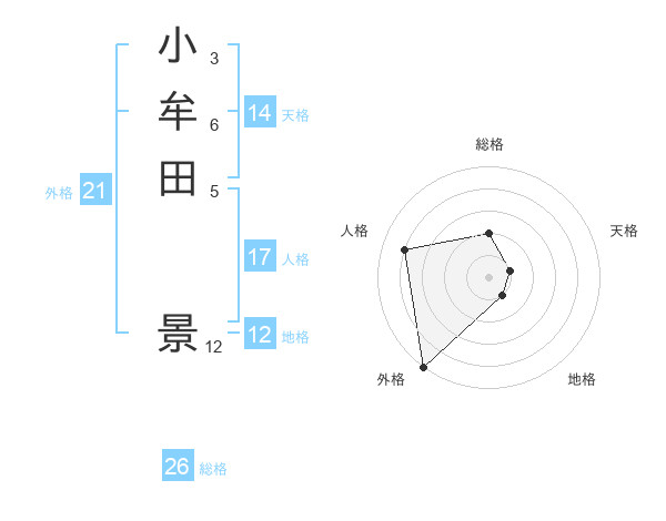小牟田 景さんの外格は21画の5点!