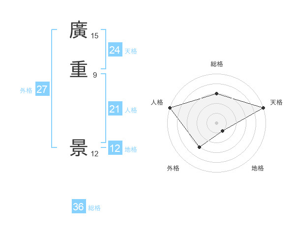 廣重 景さんの天格は24画の5点!