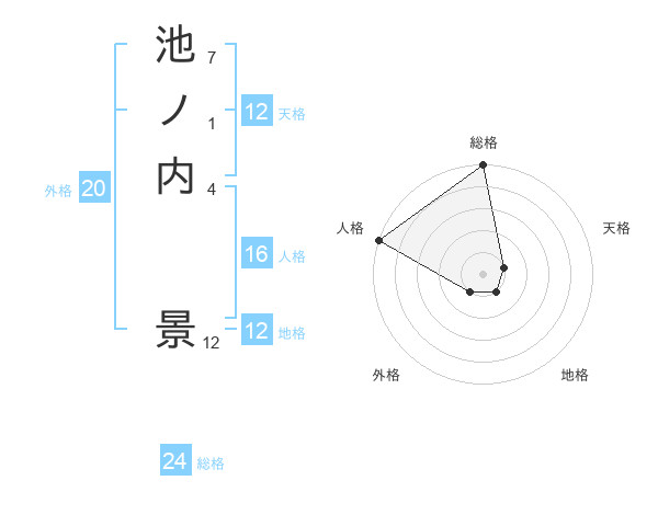 池ノ内 景さんの総格は24画の5点!