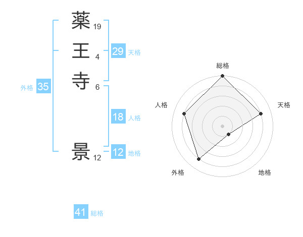 薬王寺 景さんを姓名の画数から五運を鑑定