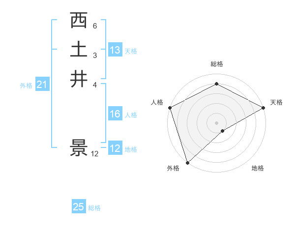 西土井 景さんの天格は13画の5点!