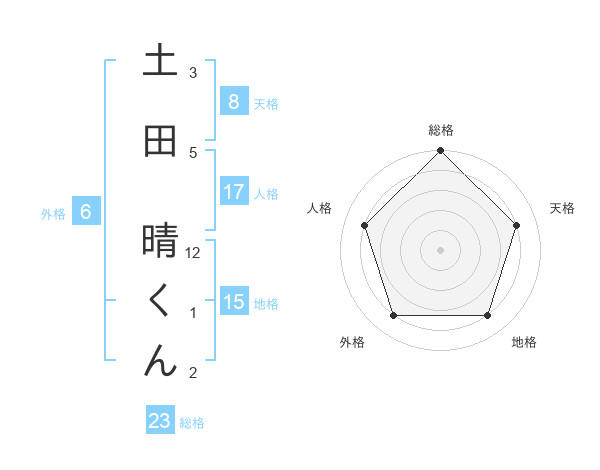 土田 晴くんさんを姓名の画数から五運を鑑定