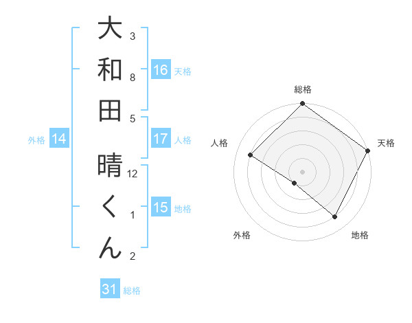 大和田 晴くんさんを姓名の画数から五運を鑑定