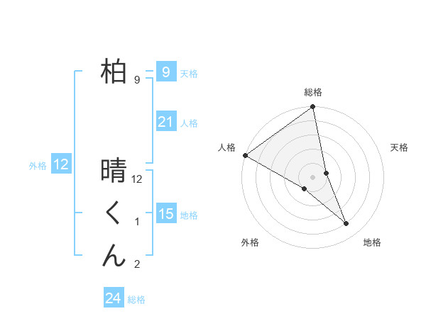 柏 晴くんさんの総格は24画の5点!