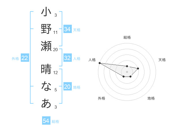 小野瀬 晴なあさんの外格は22画の1点!