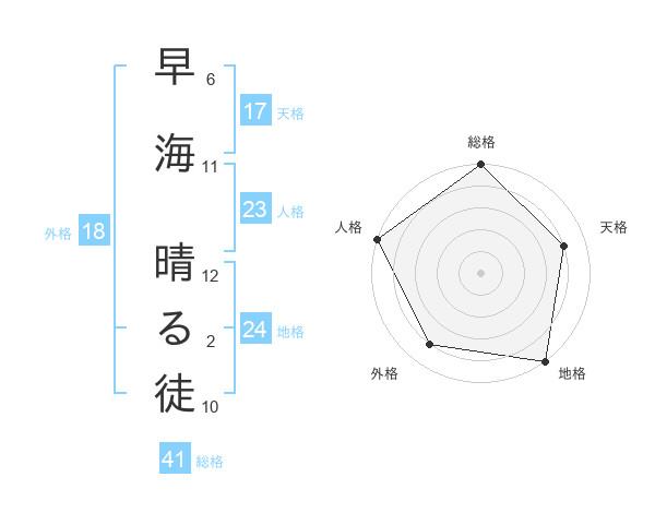 早海 晴る徒さんの地格は24画の5点!