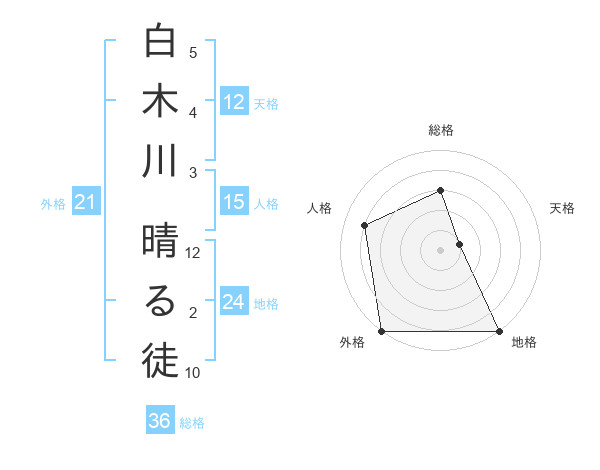 白木川 晴る徒さんを姓名の画数から五運を鑑定