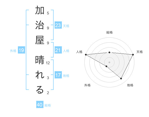 加治屋 晴れるさんの天格は23画の5点