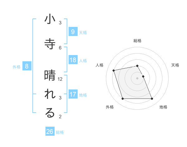 小寺 晴れるさんの総格は26画の2点!