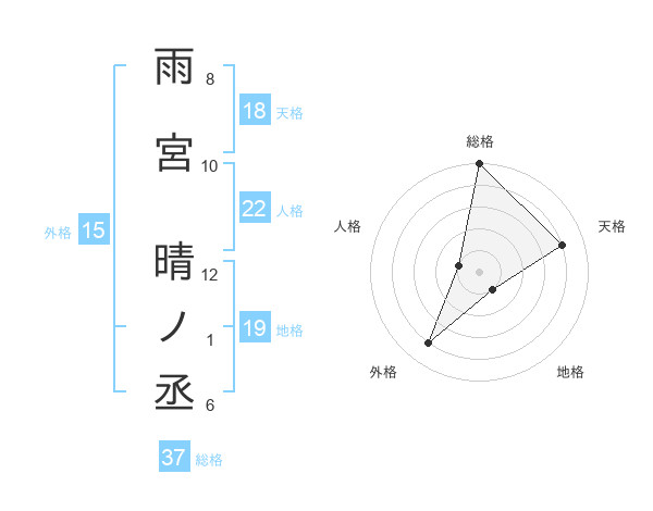 雨宮 晴ノ丞さんの外格は15画の4点!