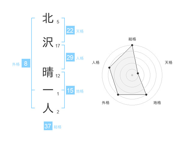 北沢 晴一人さんを姓名の画数から五運を鑑定