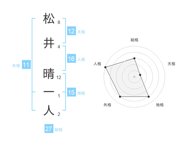 松井 晴一人さんの総格は27画の3点