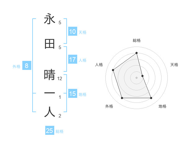 永田 晴一人さんの地格は15画の4点!