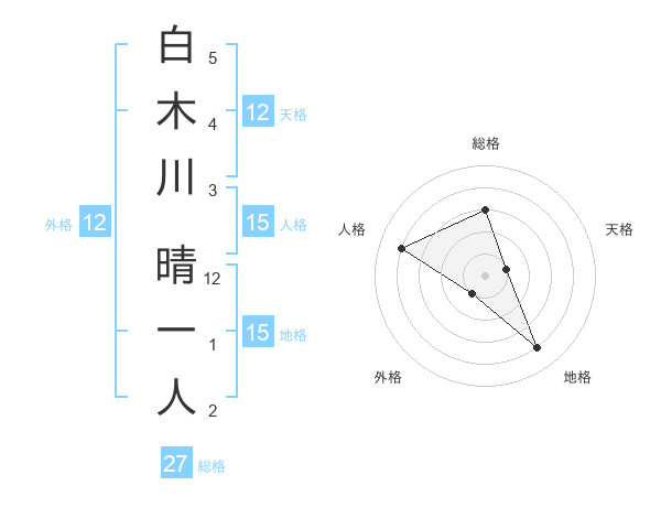 白木川 晴一人さんの総格は27画の3点!