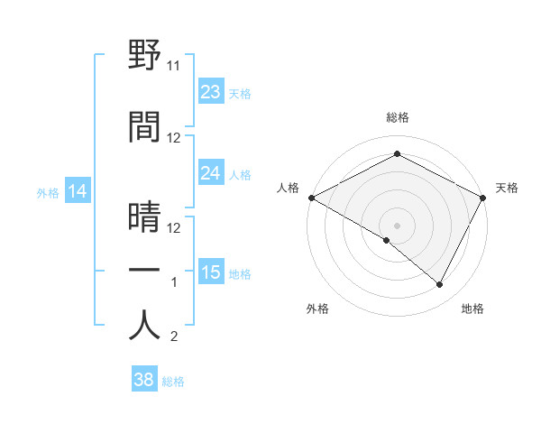 野間 晴一人さんを姓名の画数から五運を鑑定