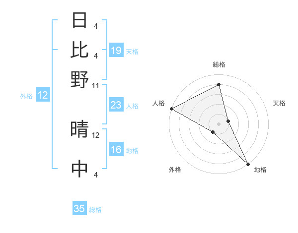 日比野 晴中さんを姓名の画数から五運を鑑定