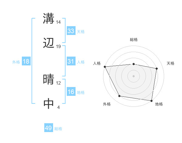 溝辺 晴中さんを姓名の画数から五運を鑑定