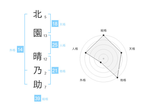 北園 晴乃助さんを姓名の画数から五運を鑑定