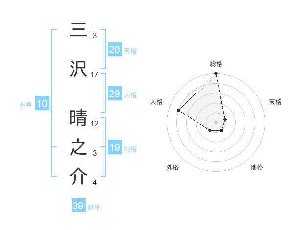三沢 晴之介さんの総格は39画の5点!