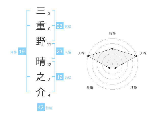 三重野 晴之介さんの天格は23画の5点!