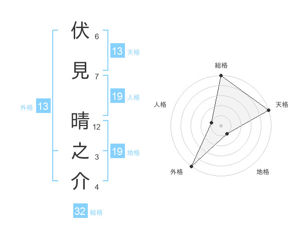 伏見 晴之介さんの外格は13画の5点!