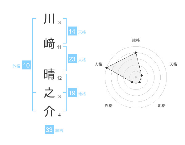 川﨑 晴之介さんを姓名の画数から五運を鑑定