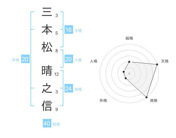 三本松 晴之信さんを姓名の画数から五運を鑑定