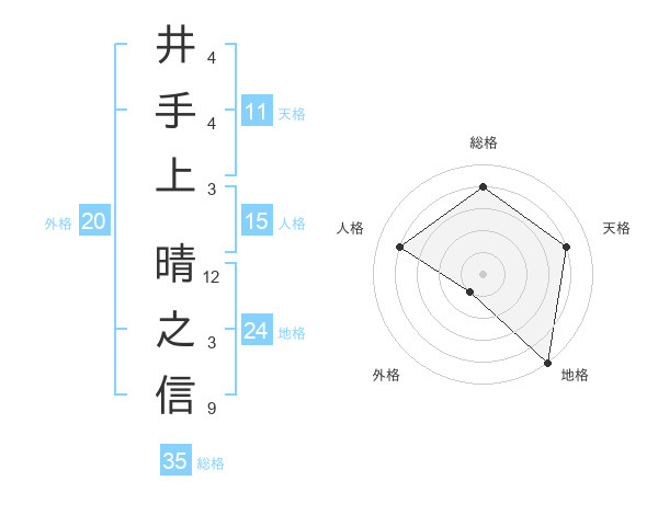 井手上 晴之信さんを姓名の画数から五運を鑑定