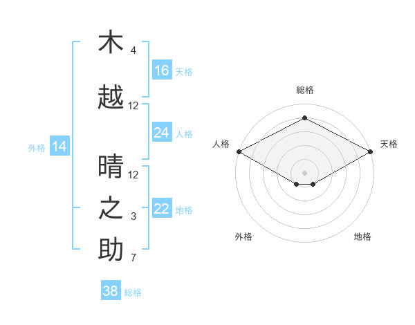 木越 晴之助さんの総格は38画の4点!