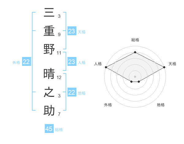 三重野 晴之助さんの天格は23画の5点!