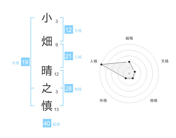 小畑 晴之慎さんの天格は12画の1点!