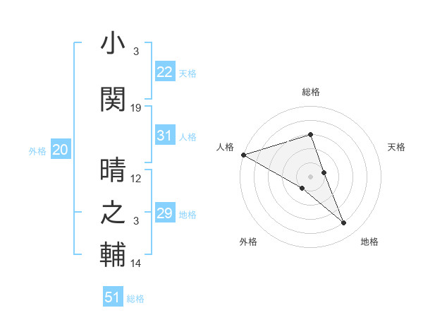 小関 晴之輔さんの総格は51画の3点