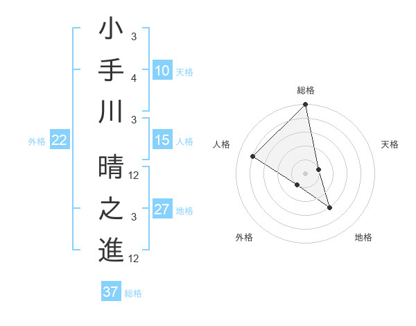 小手川 晴之進さんの総格は37画の5点!