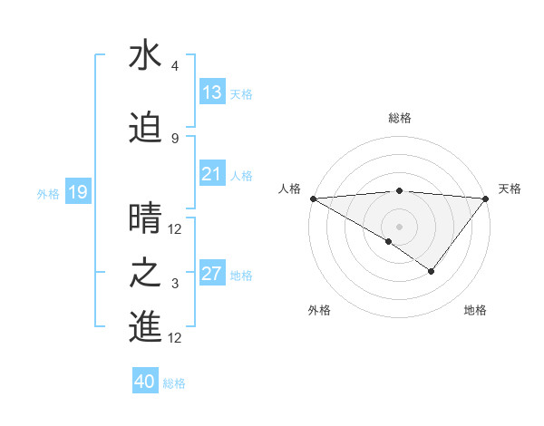 水迫 晴之進さんの天格は13画の5点!