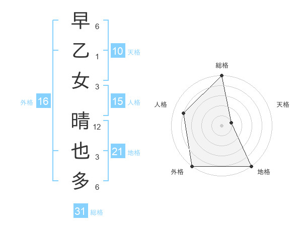 早乙女 晴也多さんを姓名の画数から五運を鑑定