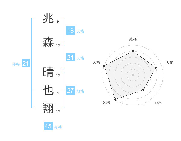 兆森 晴也翔さんを姓名の画数から五運を鑑定