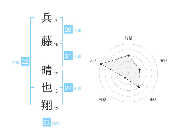 兵藤 晴也翔さんの総格は53画の3点!