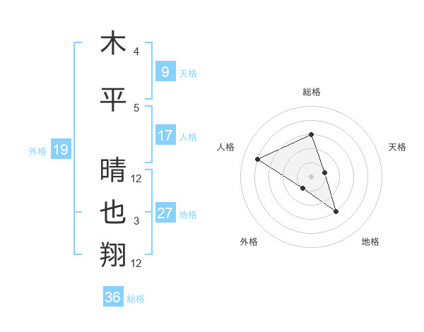 木平 晴也翔さんを姓名の画数から五運を鑑定