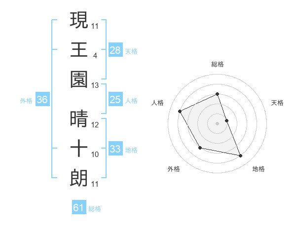 現王園 晴十朗さんを姓名の画数から五運を鑑定