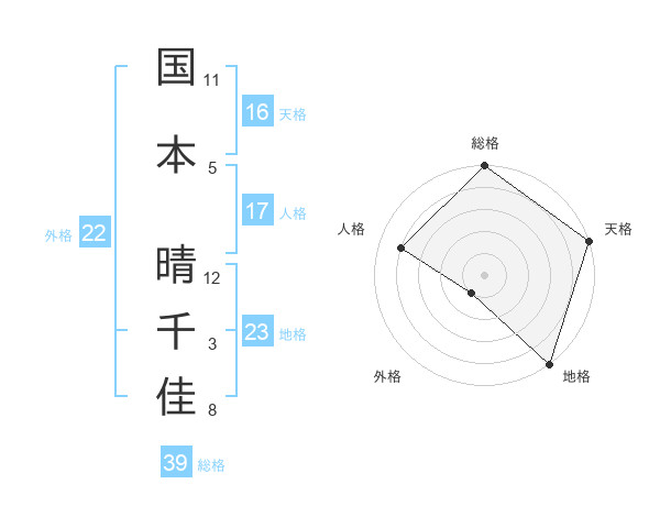 国本 晴千佳さんを姓名の画数から五運を鑑定