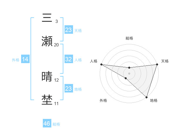 三瀬 晴埜さんの地格は23画の5点!